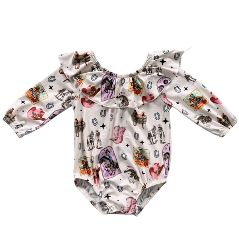 Pink Vintage Cowgirl LS Onesie (0-18M)