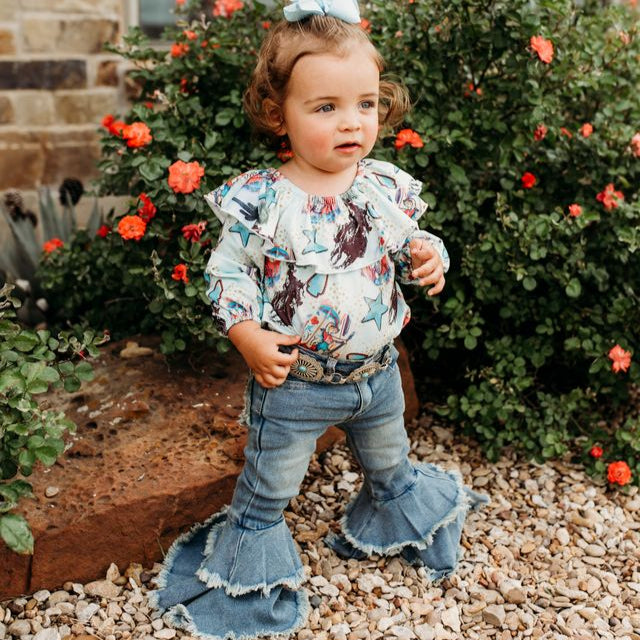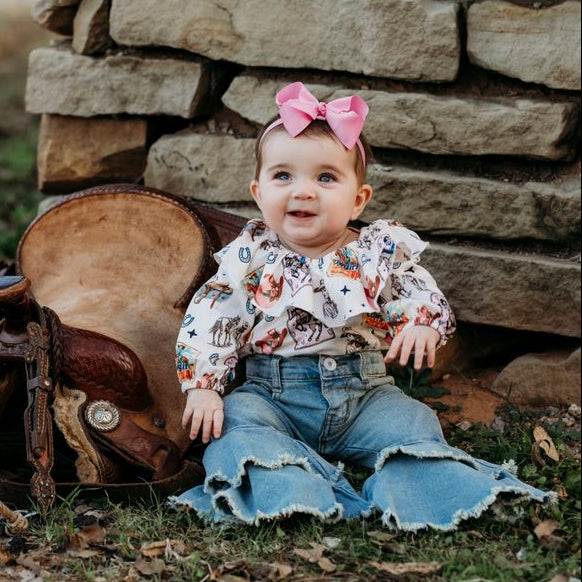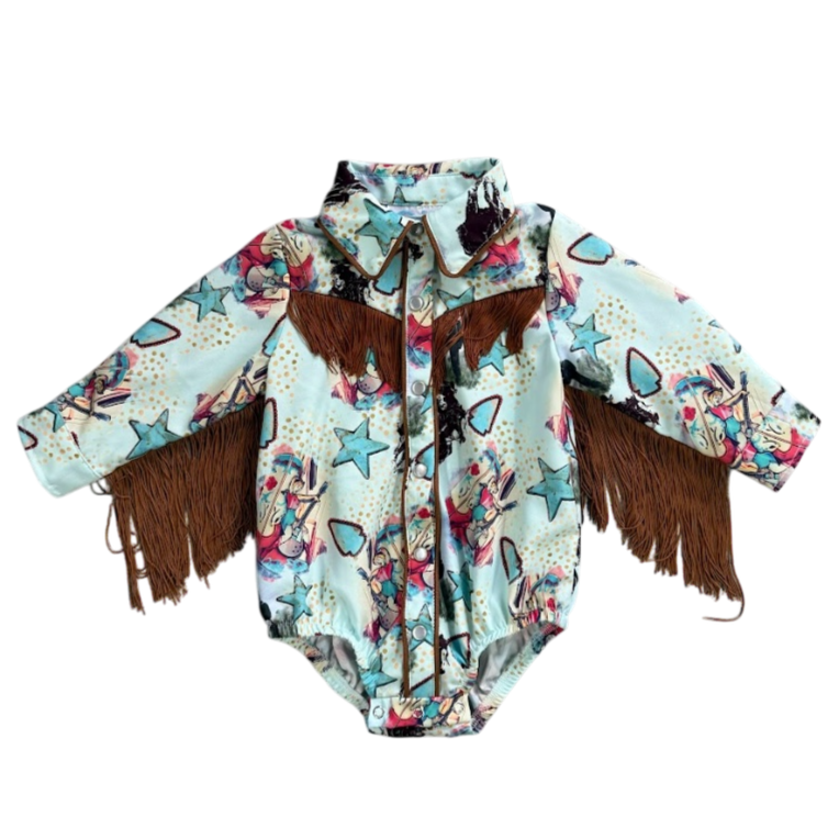 Rancher Cowgirl LS Fringe Onesie (0-18M)