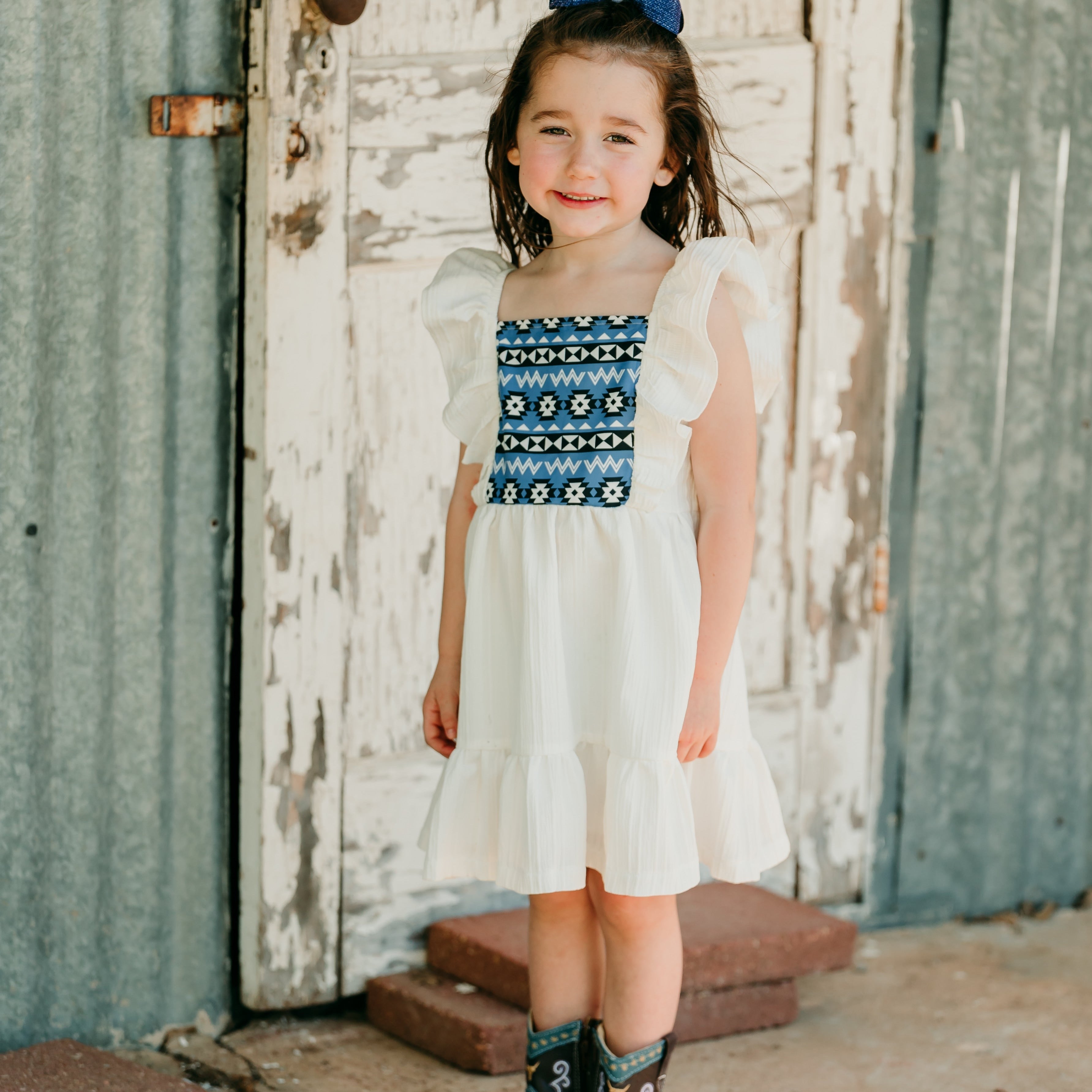 Denim Aztec SS Pearl Snap Dress Toddler (2T-5T)