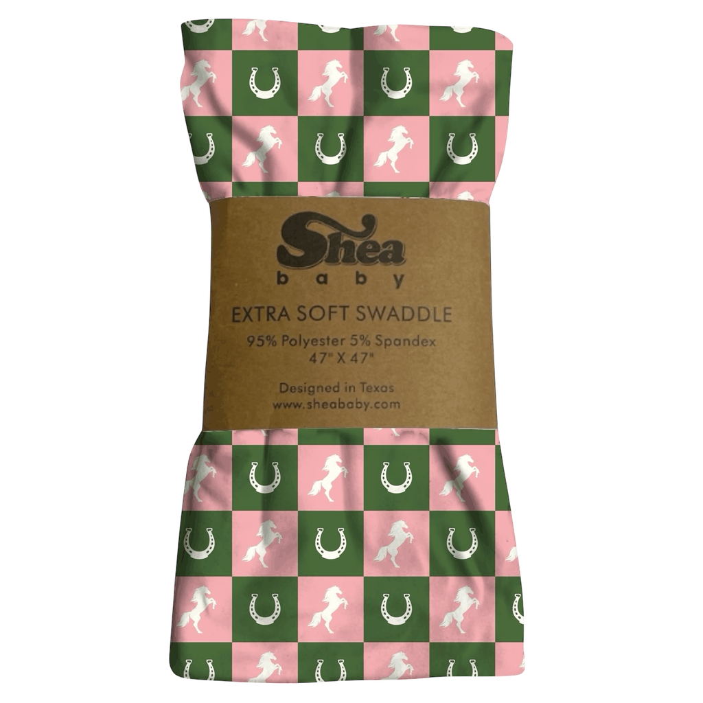 This adorable print swaddle is perfect for any little Cowgirl. Made from 95% Polyester & 5% Spandex this is this allows for the perfect soft swaddle for your little one. 47' by 47' in size.