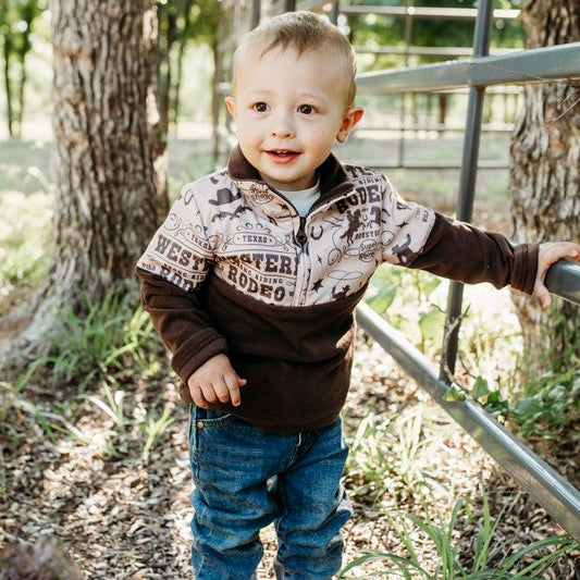 Looking to have your little one warm and stylish is Fall and Winter? These Fleece Zip ups are comfortable and perfect for cowboys all ages. The quarter zip makes taking it on and off easy. This fleece is a must for every closet this year!