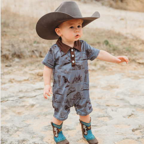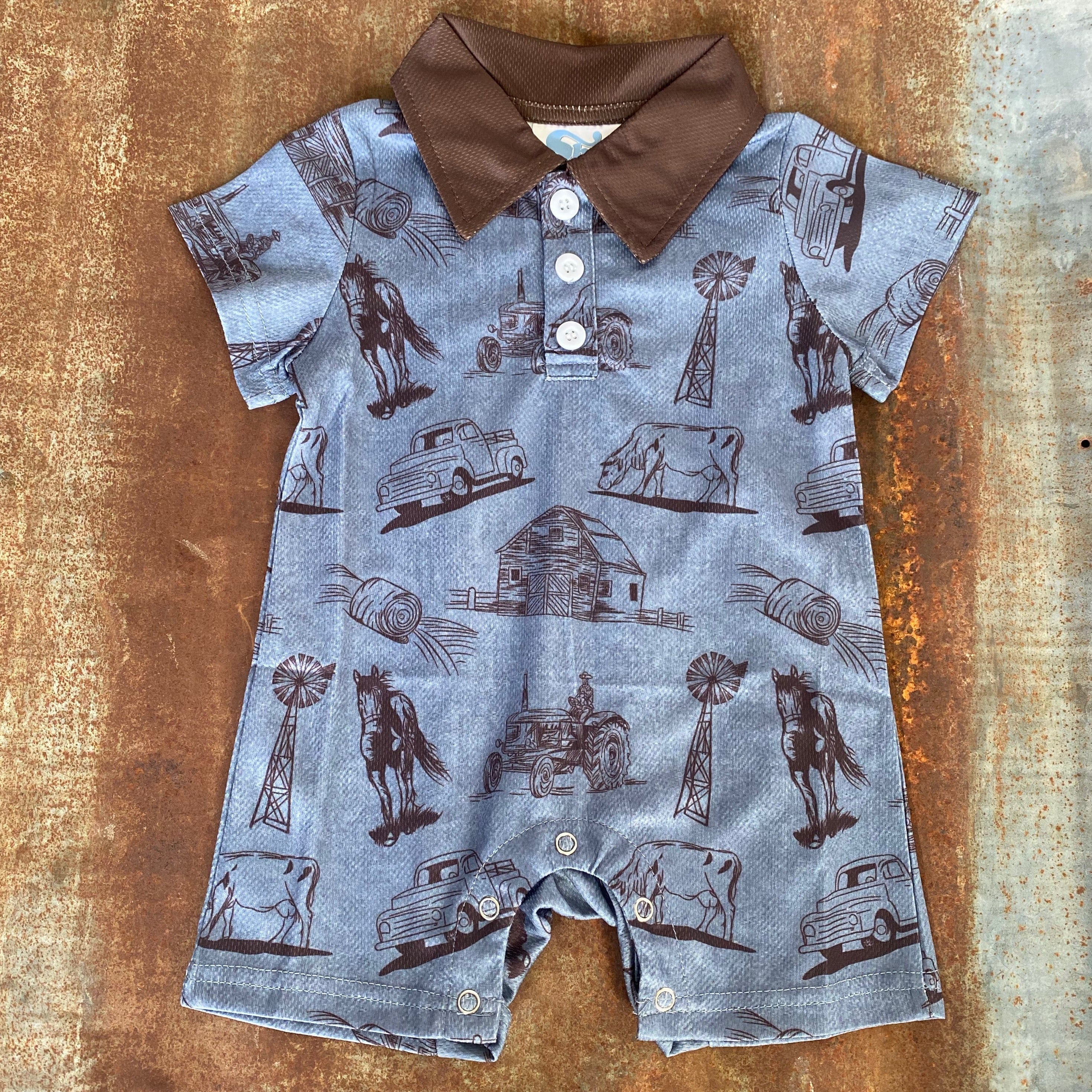 These adorable Farm Print Short Sleeve Boys Rompers are not only comfortable for your little one but also super cute. With snap buttons at the bottom these rompers are easy to take on and off & don't forget most importantly easy to change that diaper when needed.