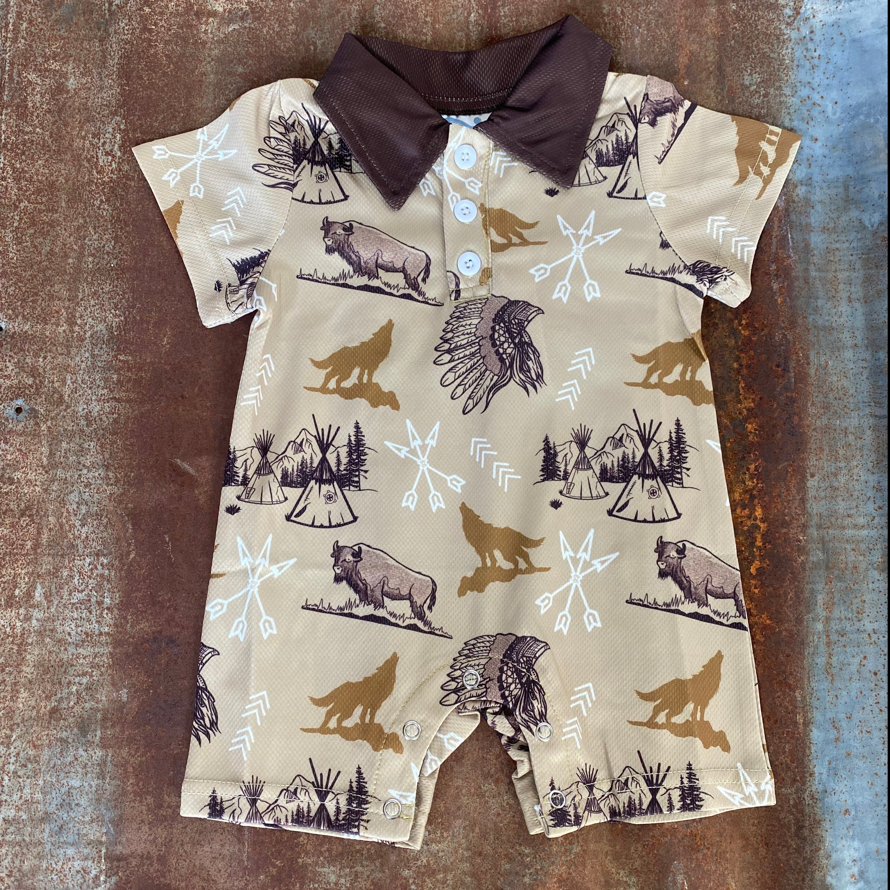 These adorable Indian Green Print Short Sleeve Boys Rompers are not only comfortable for your little one but also super cute. With snap buttons at the bottom these rompers are easy to take on and off & don't forget most importantly easy to change that diaper when needed.