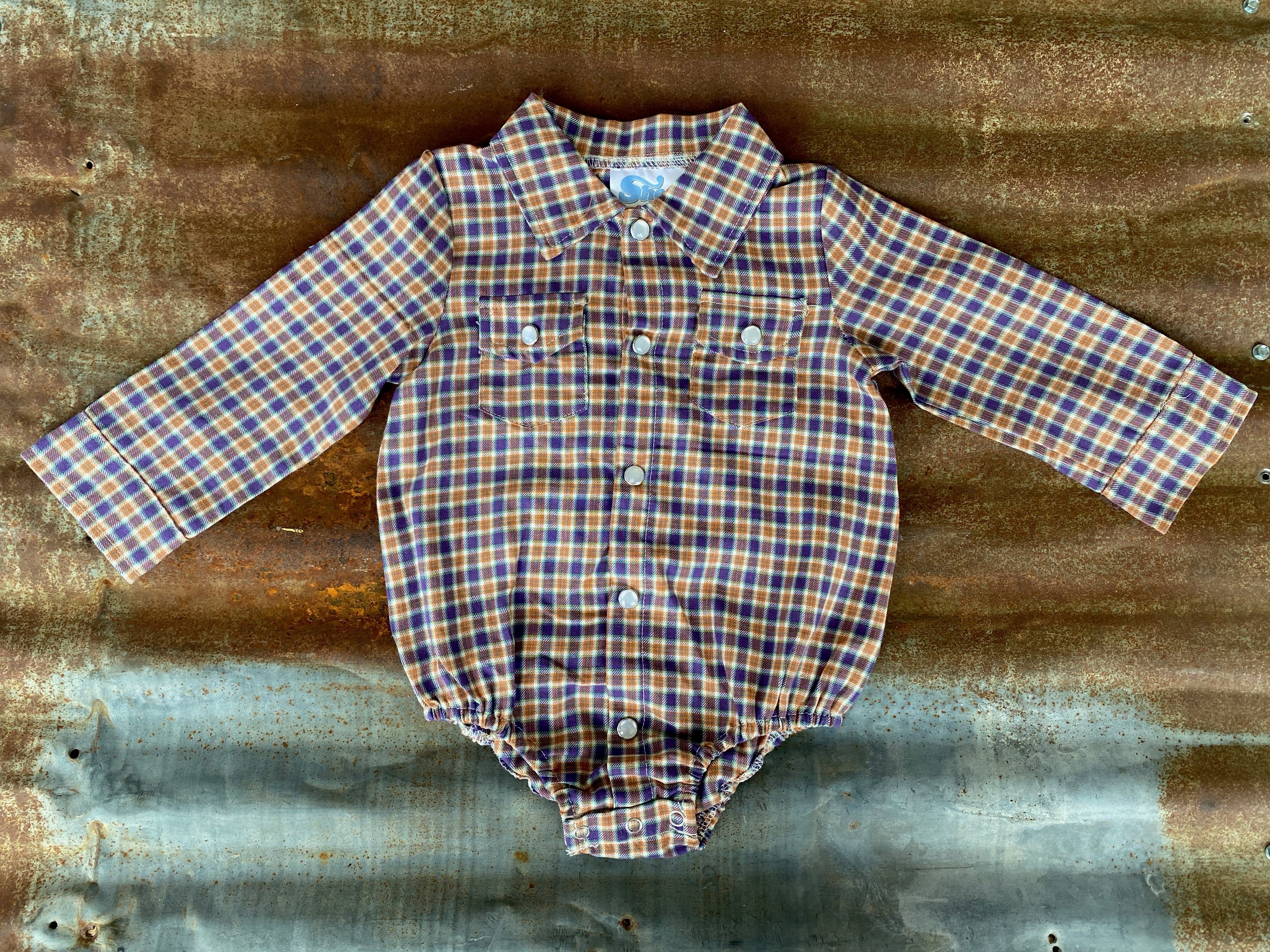 Orange/Purple Plaid LS Pearl Snap Onesie Baby (0-18M)