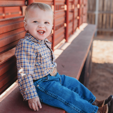 Crafted with stylish pearl snap buttons, this Plaid Long Sleeve Pearl Snap onesie will look handsome on your little one! The fun colors and durable material make this shirt perfect for family parties and days on the ranch. Shea Baby Long Sleeve Snap onesie are a must for every cowboy!