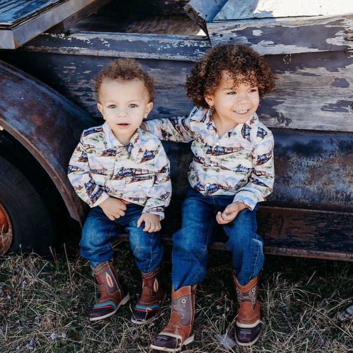 Western Train LS Pearl Snap Onesie, (0-18M)