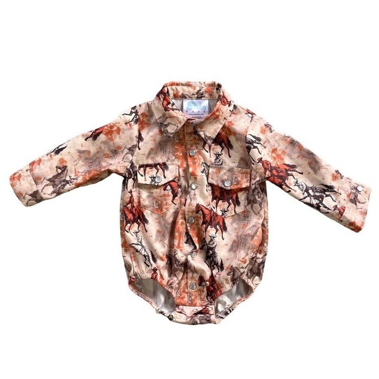 Traveling Cowboy Long Sleeve Pearl Snap Onesie Baby (0-18M)