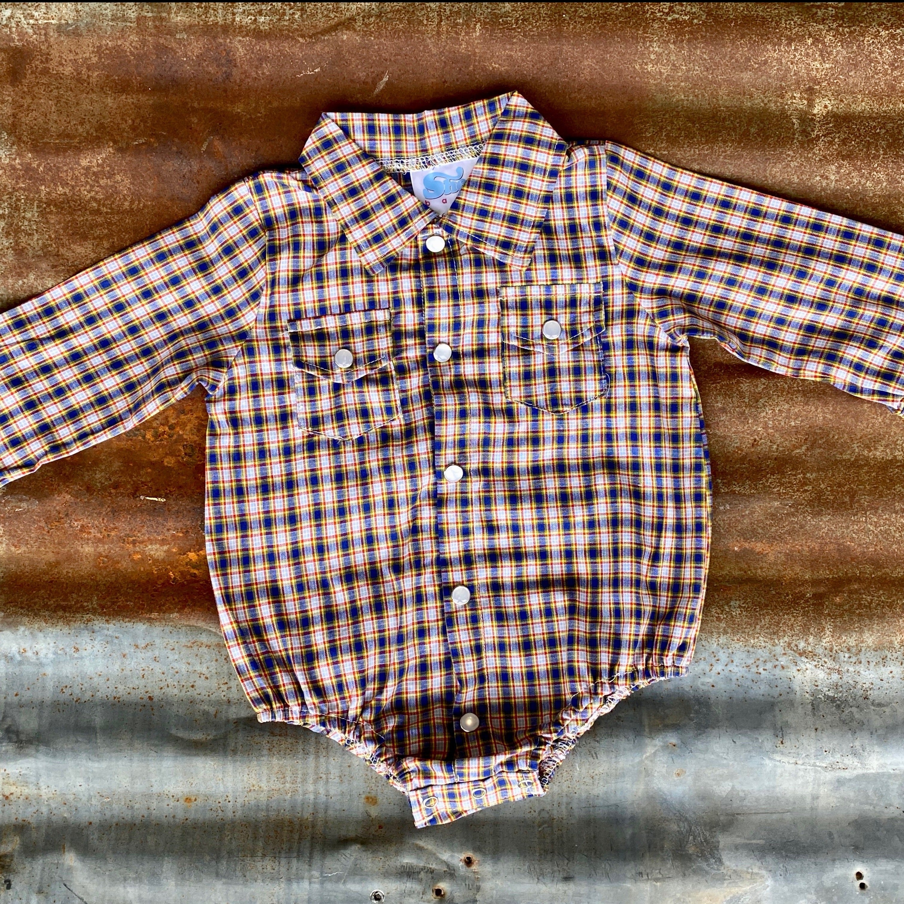 Blue Plaid LS Pearl Snap Onesie Baby (0-18M)