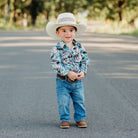 Crafted with stylish pearl snap buttons, this Long Sleeve Pearl Snap shirt will look handsome on your little one! The durable material makes this shirt perfect for family parties and days on the ranch. Shea Baby Short Sleeve Snap shirts are a must for every cowboy!