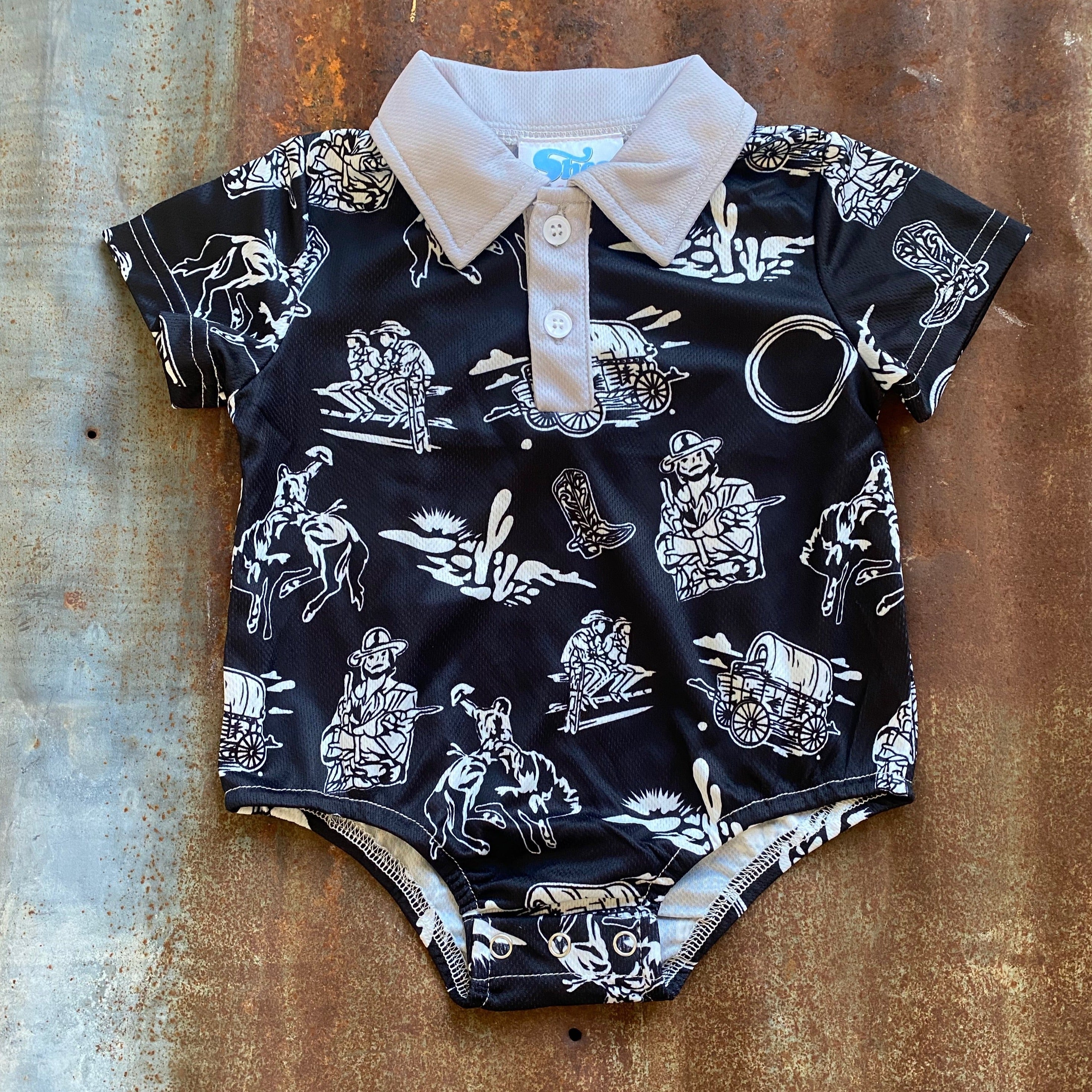 These adorable Black Wild West Print Short Sleeve Onesies are not only comfortable for your little one but also super cute. With snap buttons at the bottom, they are easy to take on and off & don't forget most importantly easy to change that diaper when needed.