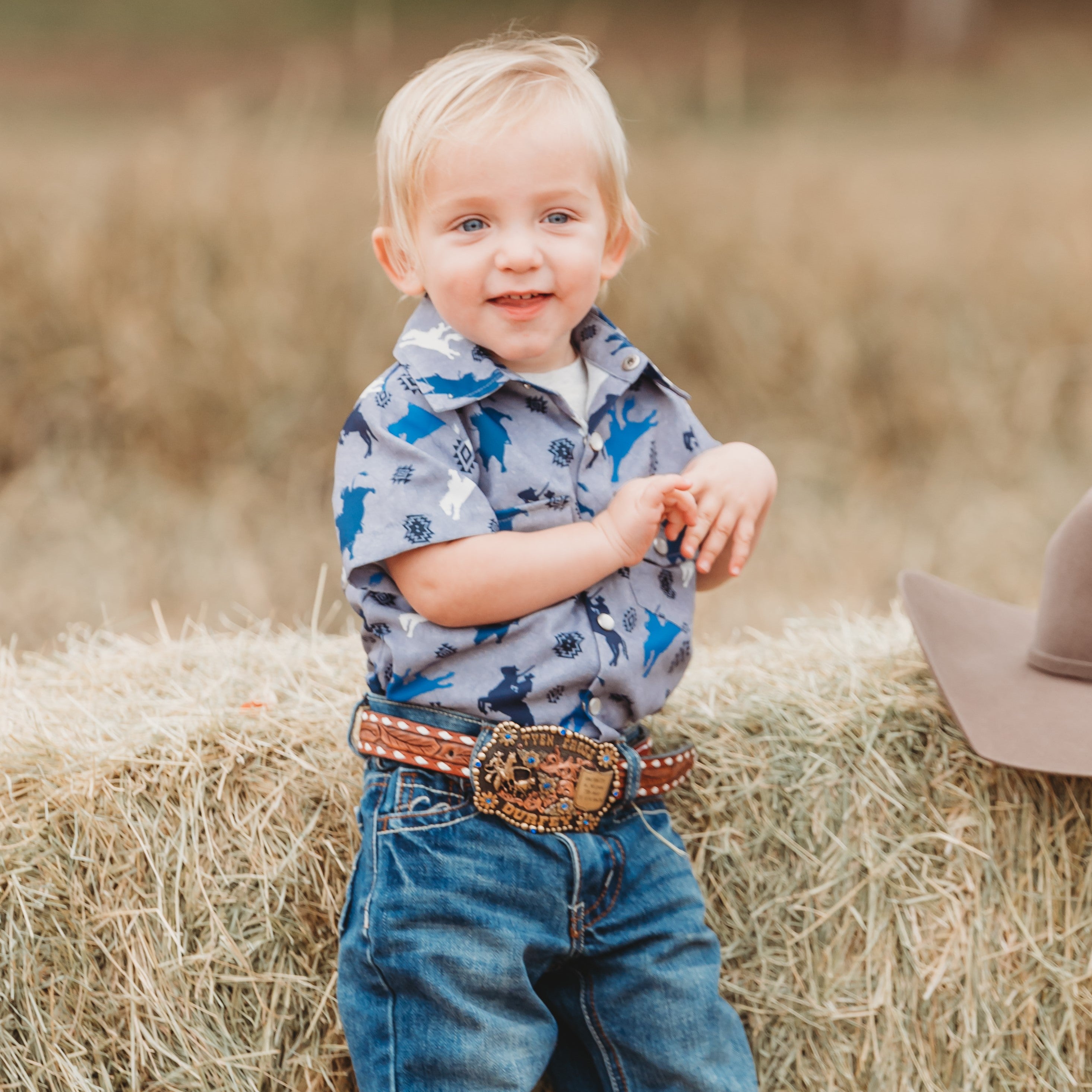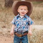 Crafted with stylish pearl snap buttons, this Short Sleeve Pearl Snap shirt will look handsome on your little one! The durable material makes this shirt perfect for family parties and days on the ranch. Shea Baby Short Sleeve Snap shirts are a must for every cowboy!