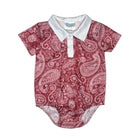 This adorable Maroon Paisley Polo Onesie is not only comfortable for your little one but also super cute. With snap buttons at the bottom, they are easy to take on and off & don't forget most importantly easy to change that diaper when needed.