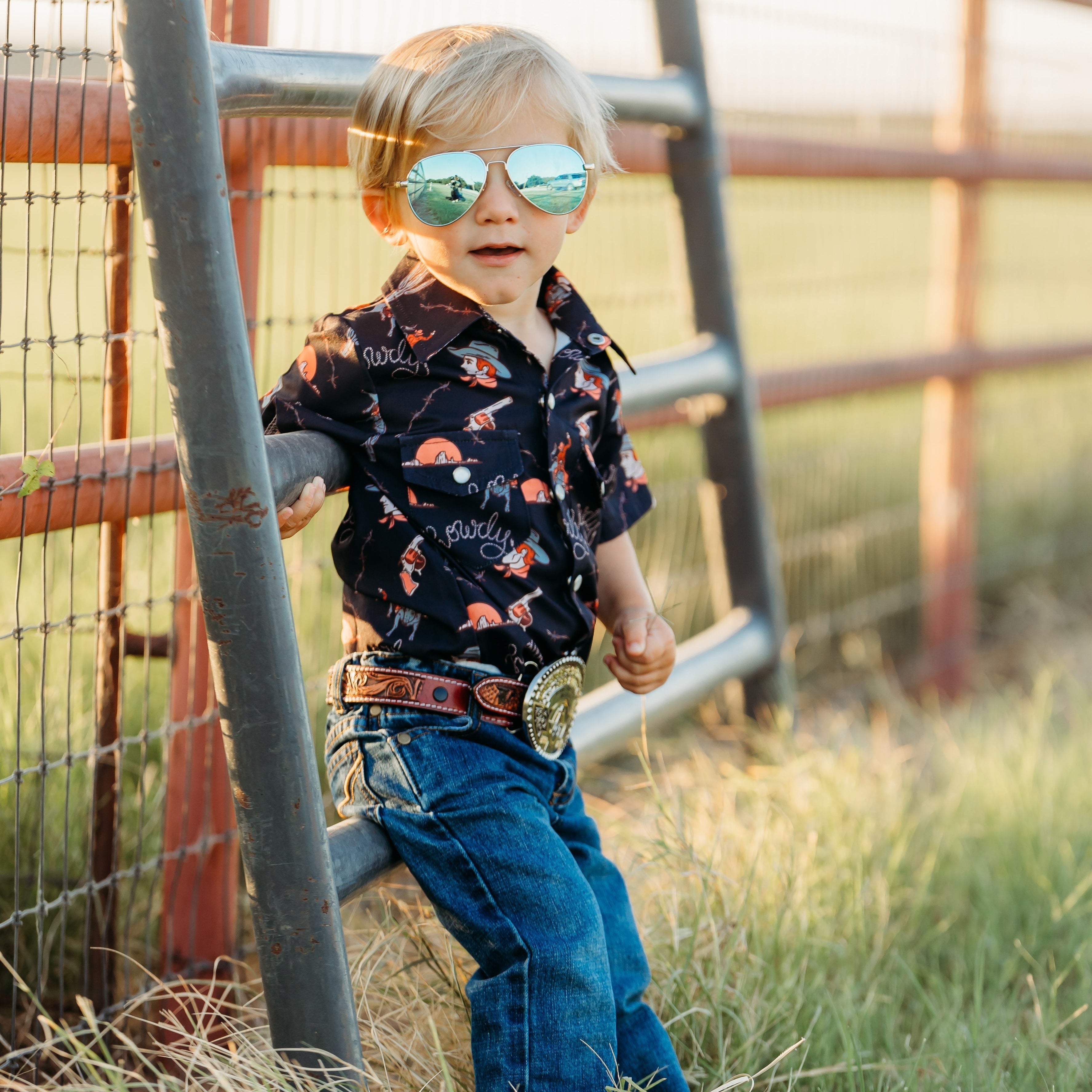 Crafted with stylish pearl snap buttons, this Short Sleeve Pearl Snap shirt will look handsome on your little one! The durable material makes this shirt perfect for family parties and days on the ranch. Shea Baby Short Sleeve Snap shirts are a must for every cowboy!
