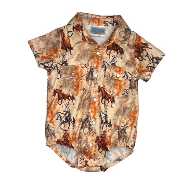 Traveling Cowboy SS Pearl Snap Onesie, (0-18M)
