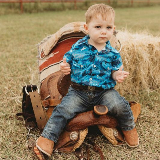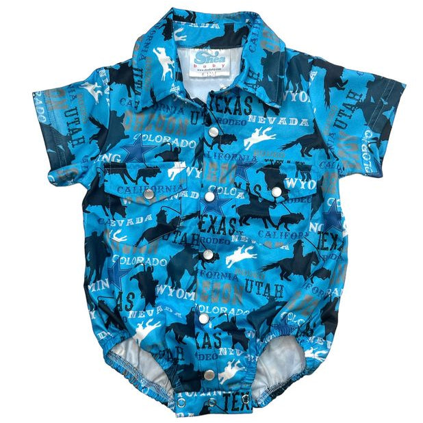 Rodeo Road Blue SS Pearl Snap Onesie, (0-18M)