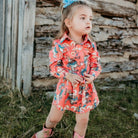This adorable long sleeve button up fun western print dress is perfect for this Fall & Winter. Paired with a pair of tights & Shea Baby Boots for the complete outfit.