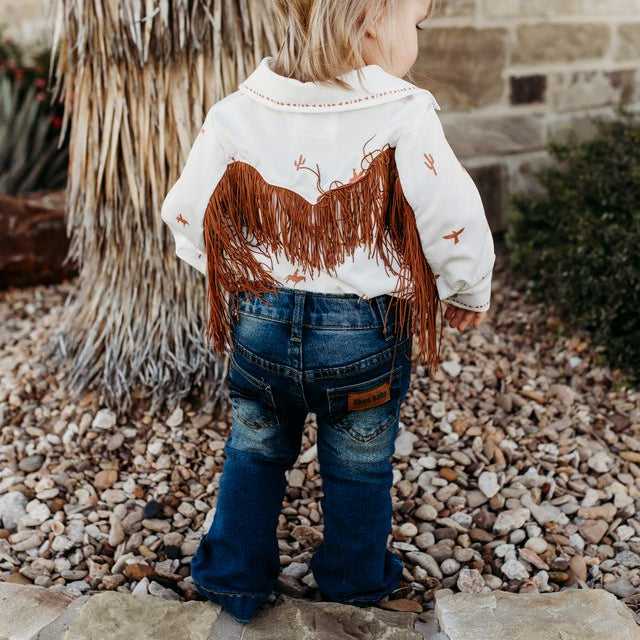 These ruffle Girl's Trouser Jeans pair with all of our Shea Baby tops, and Shea Baby Boots.