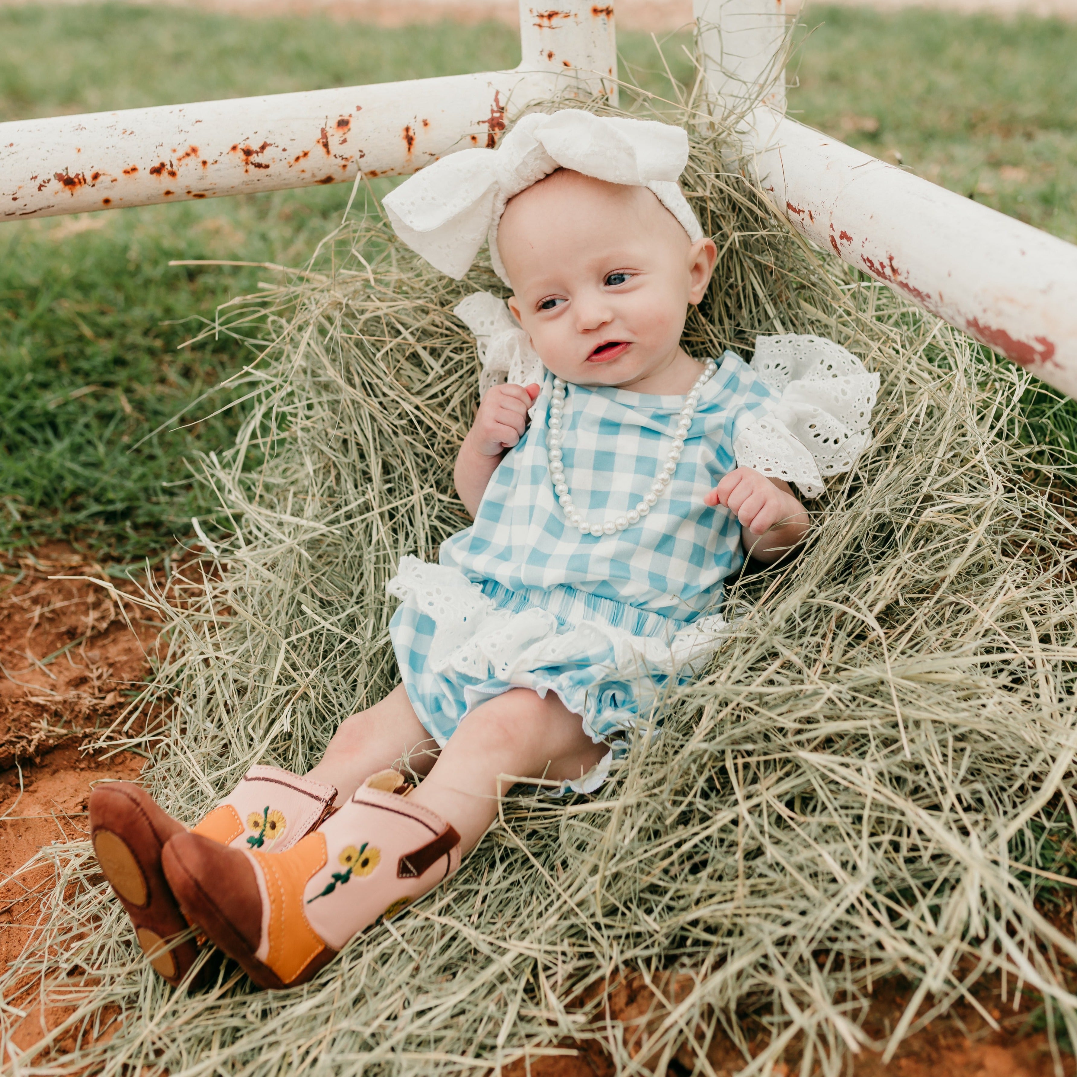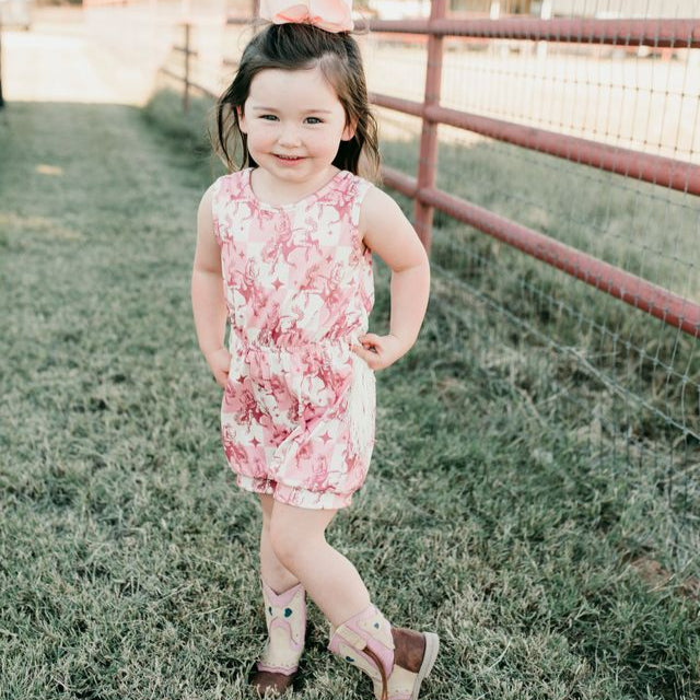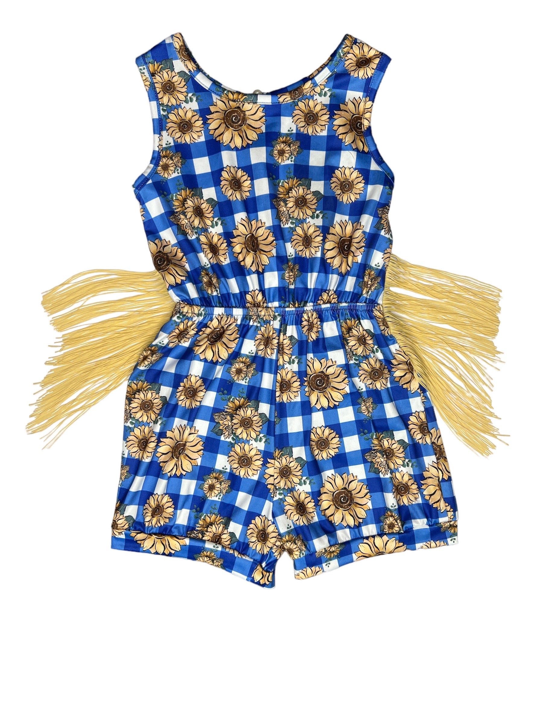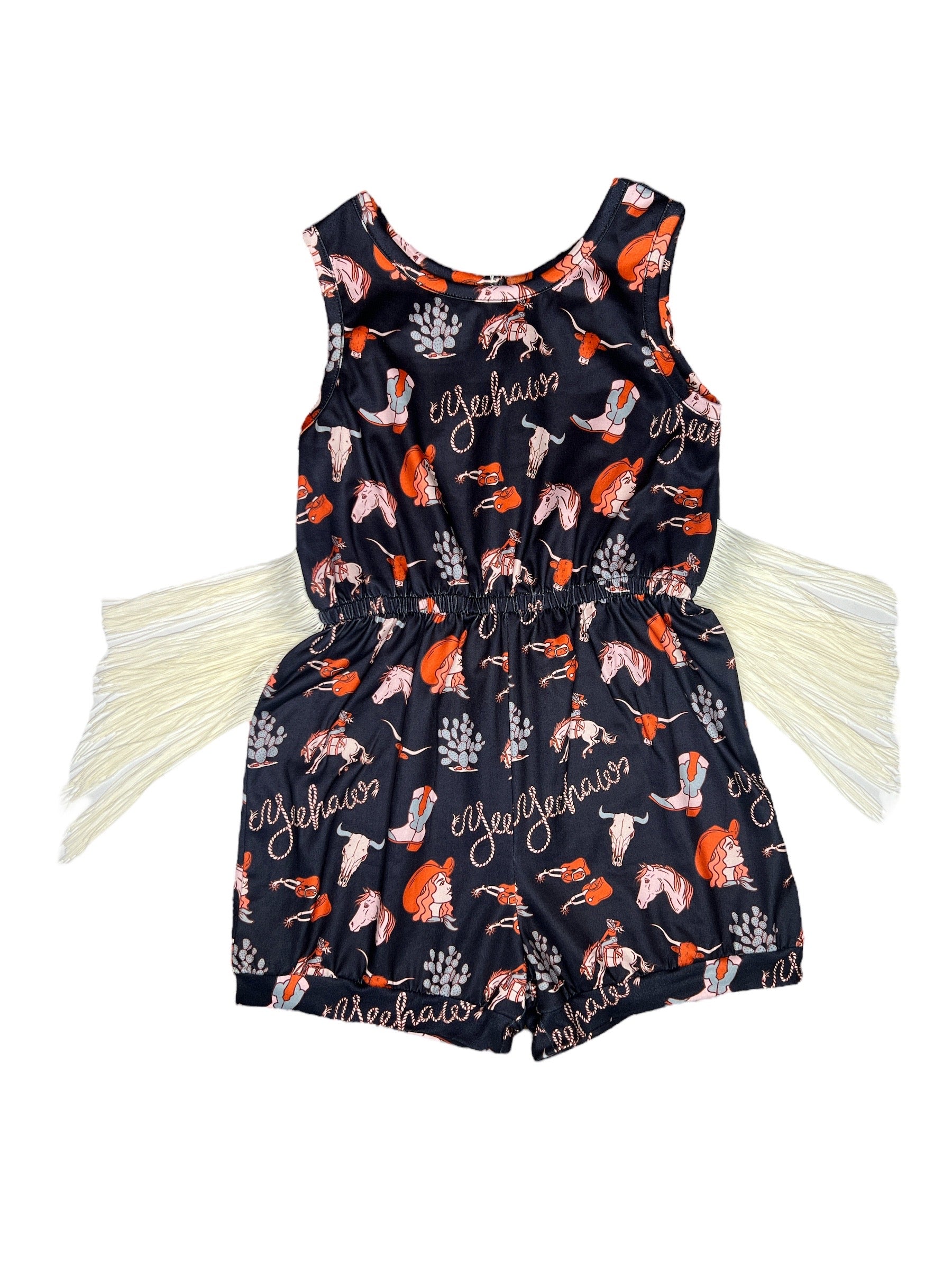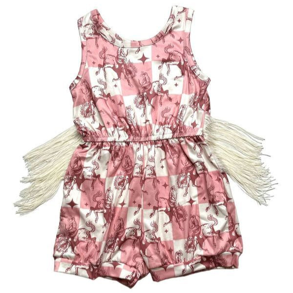 Plaid Bucking Horse Fringe Romper, (0-18M)
