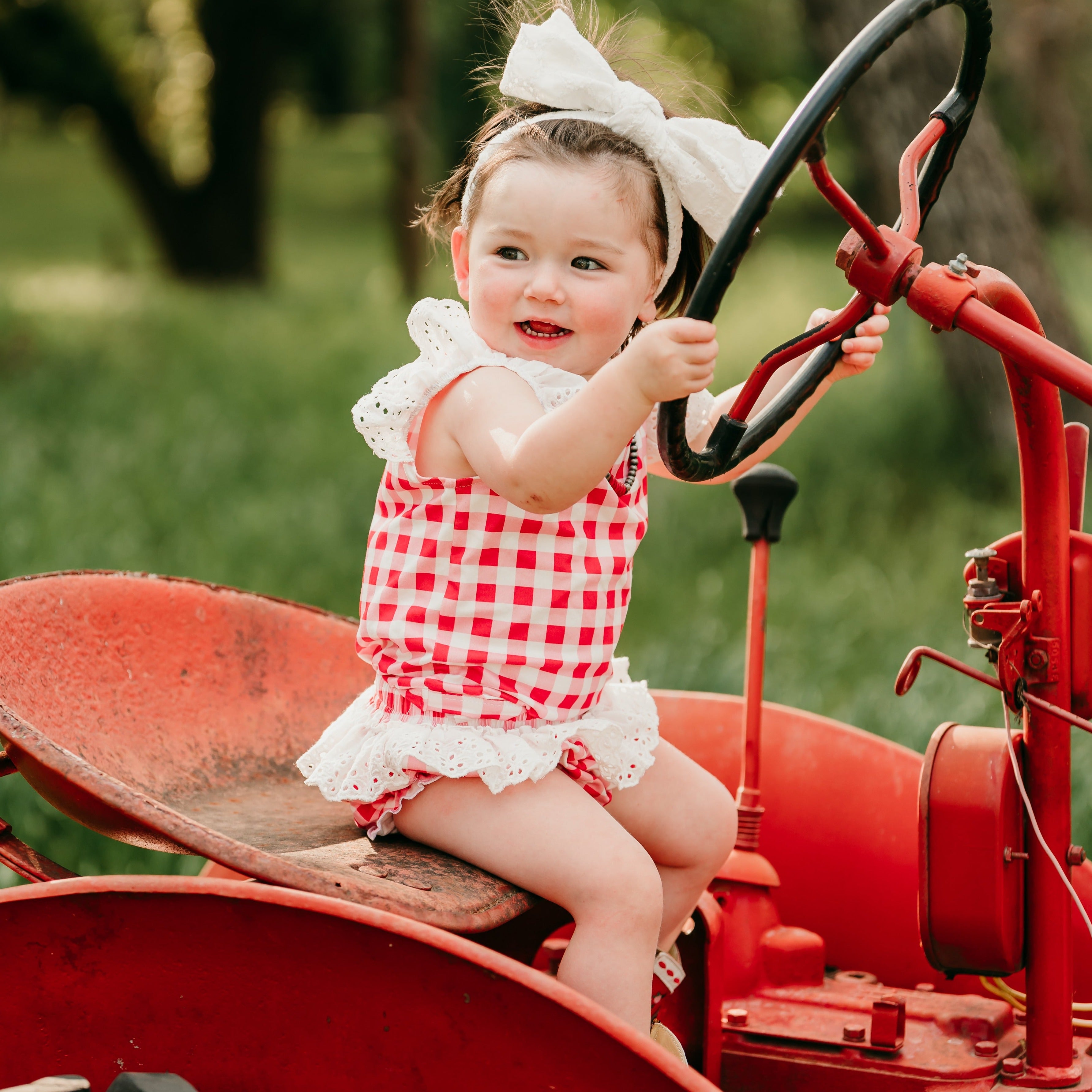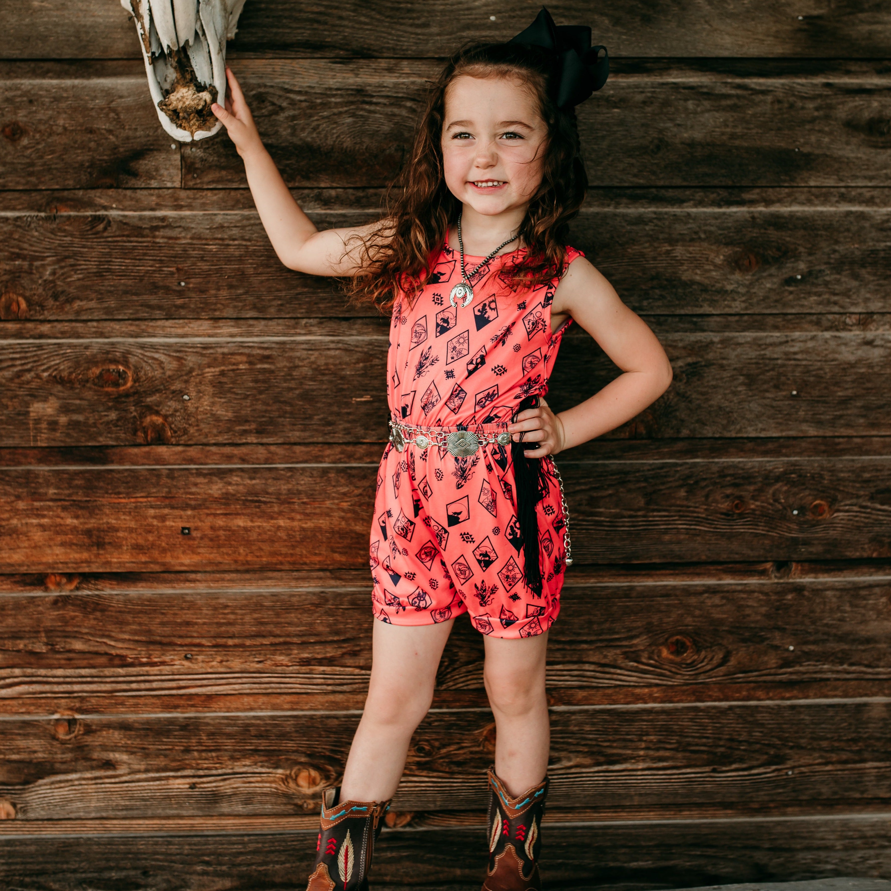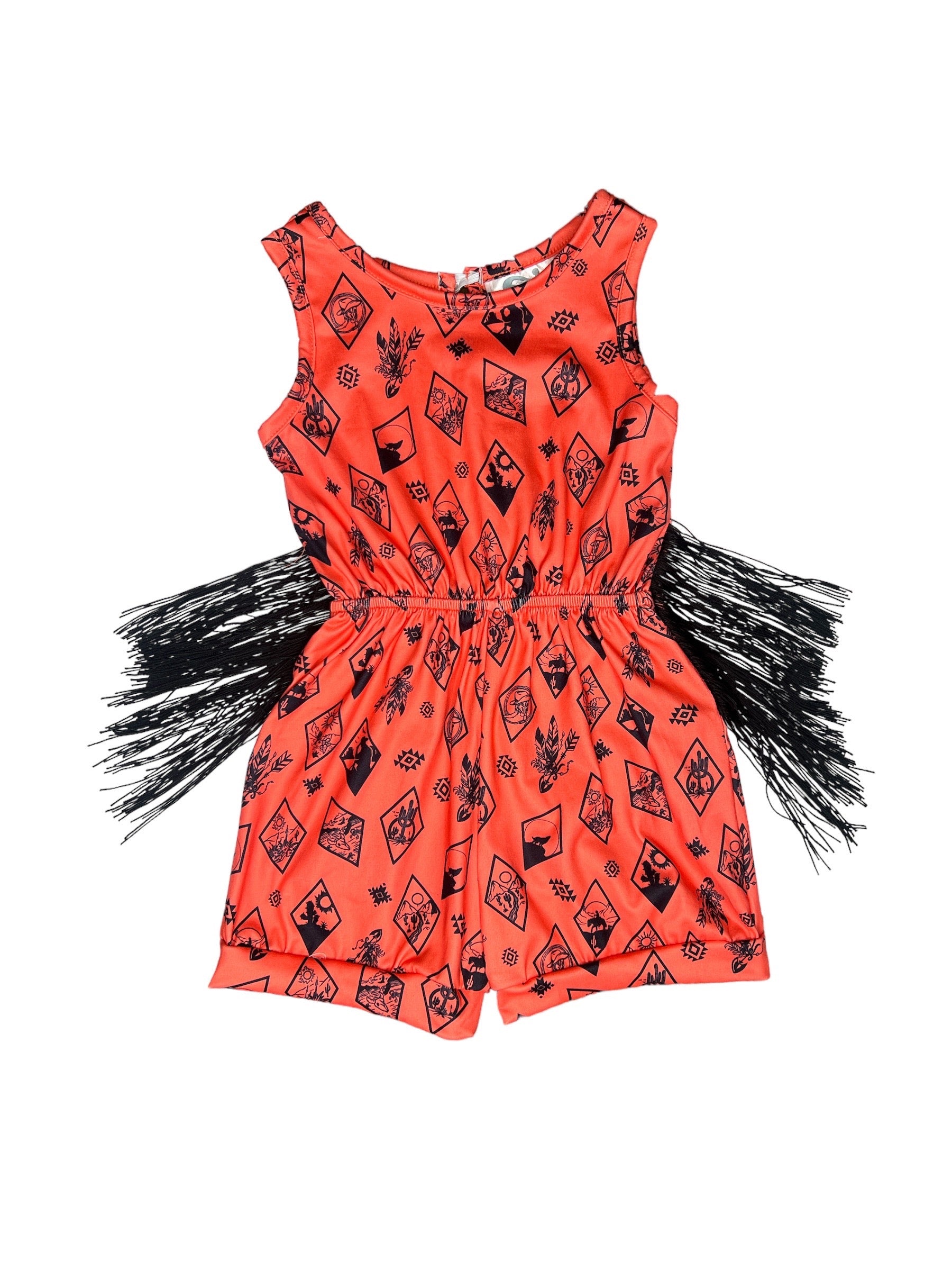 Plaid Bucking Horse Fringe Romper, (0-18M)