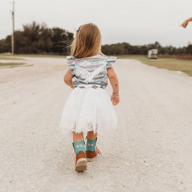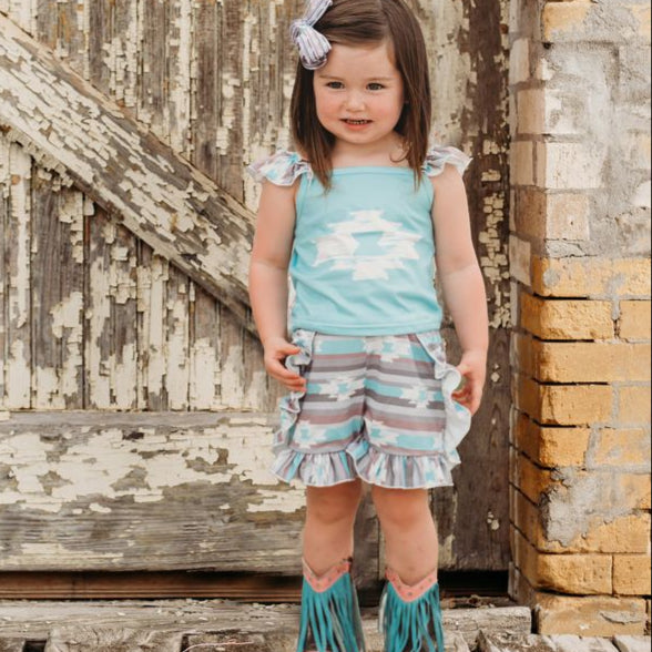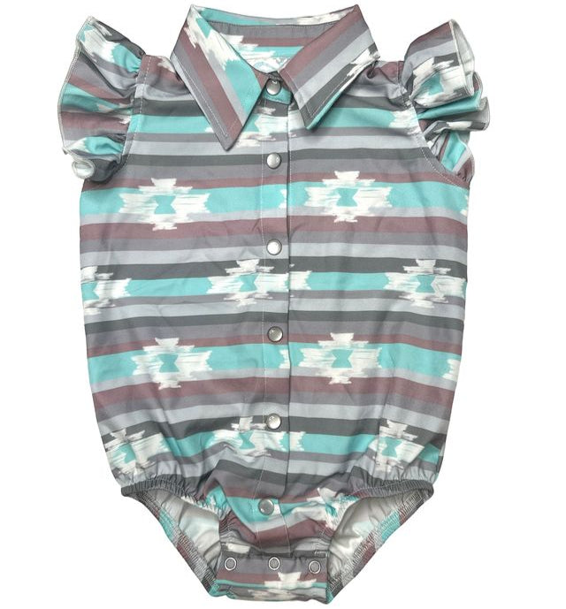 Teal Aztec SS Pearl Snap Onesie, (0-18M)