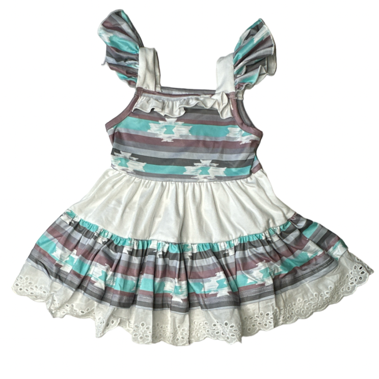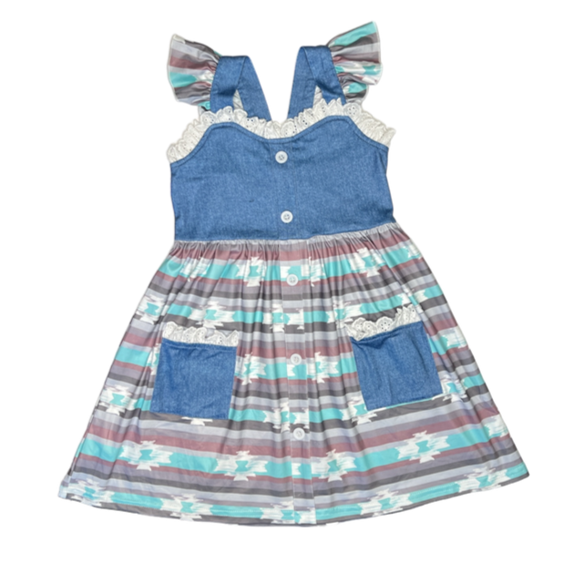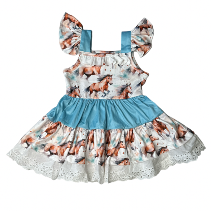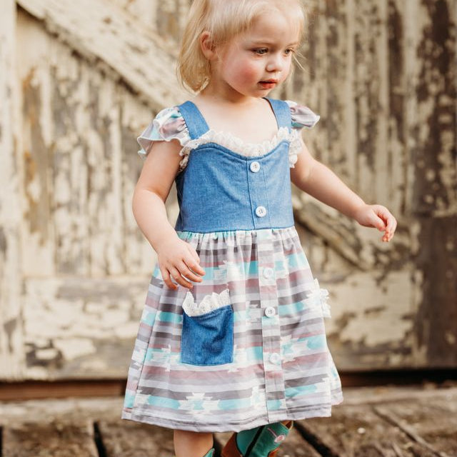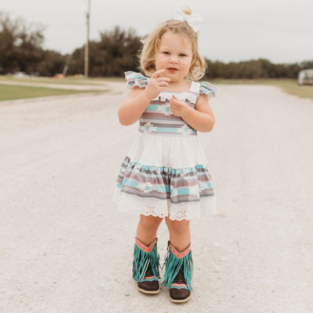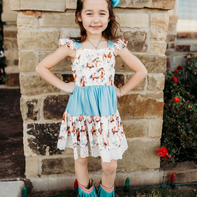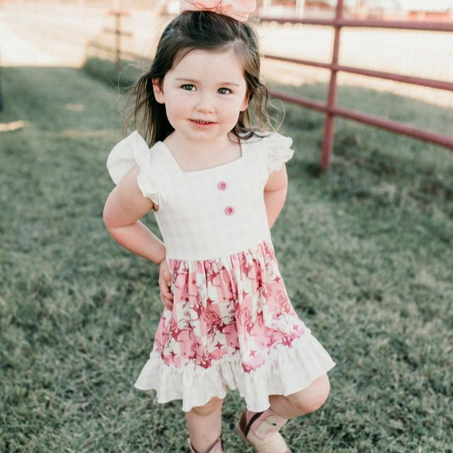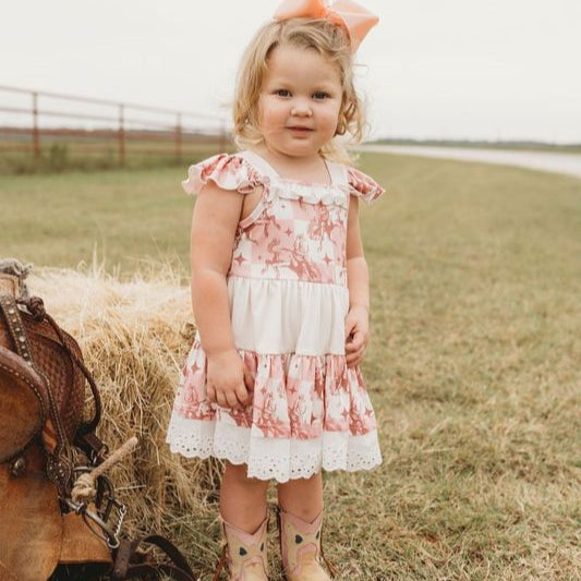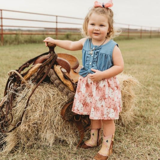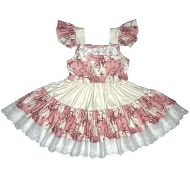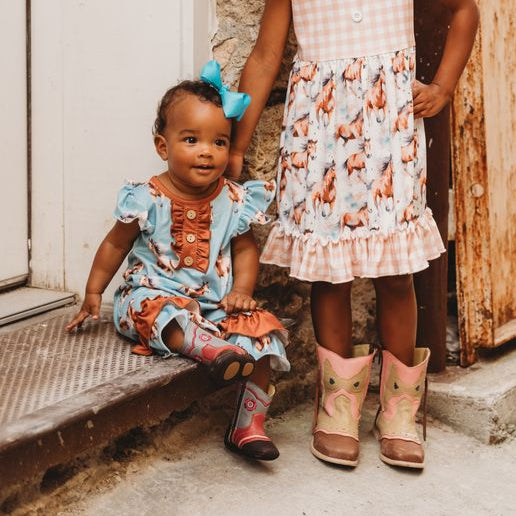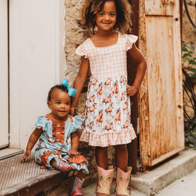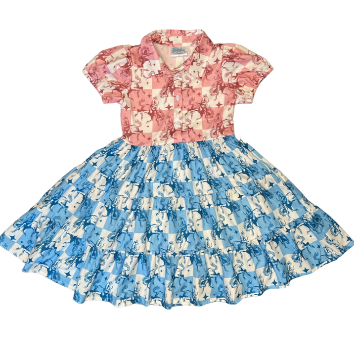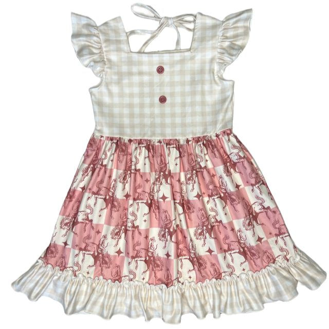 Two Toned Plaid Bucking Horse Flow Dress, (0-18M)