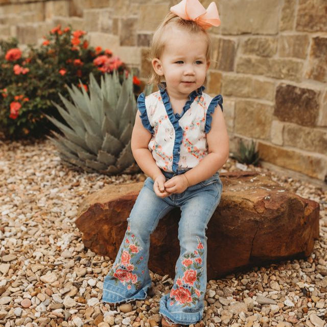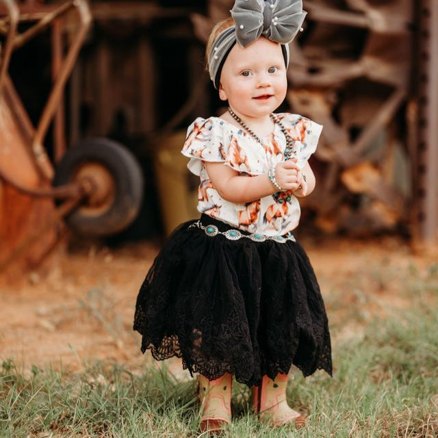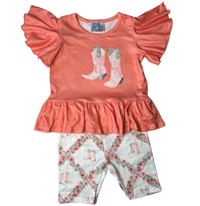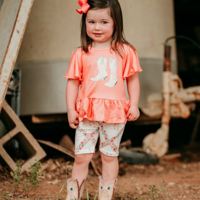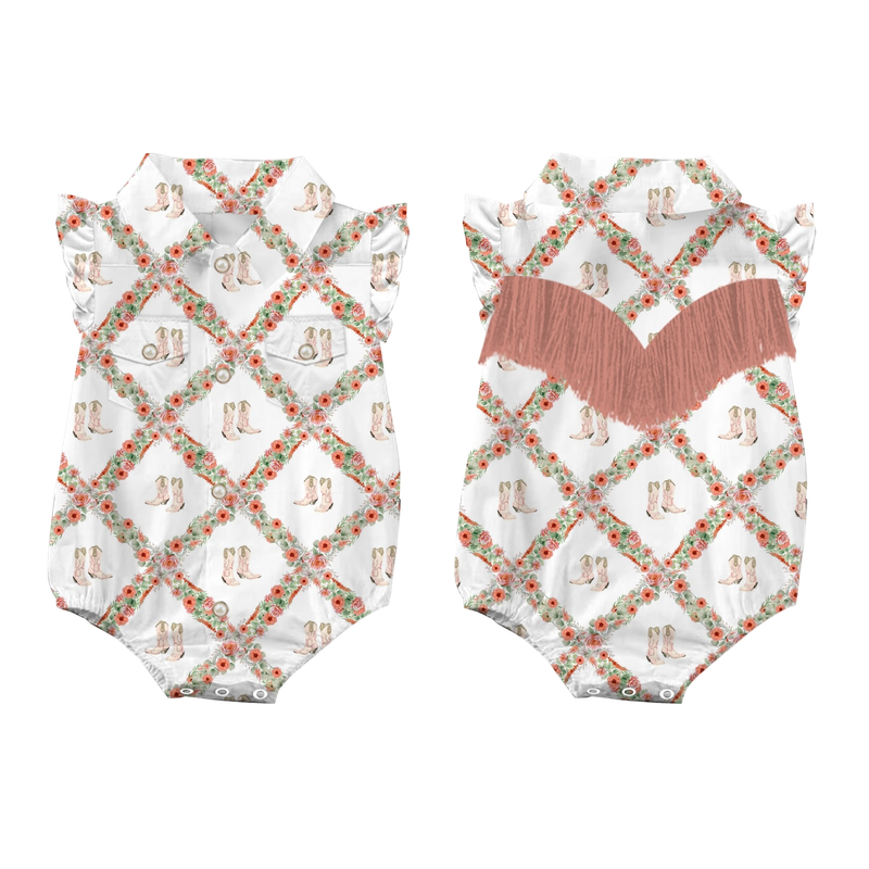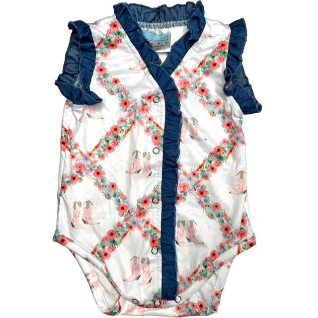 Floral Boot SS Pearl Snap Onesie, (0-18M)