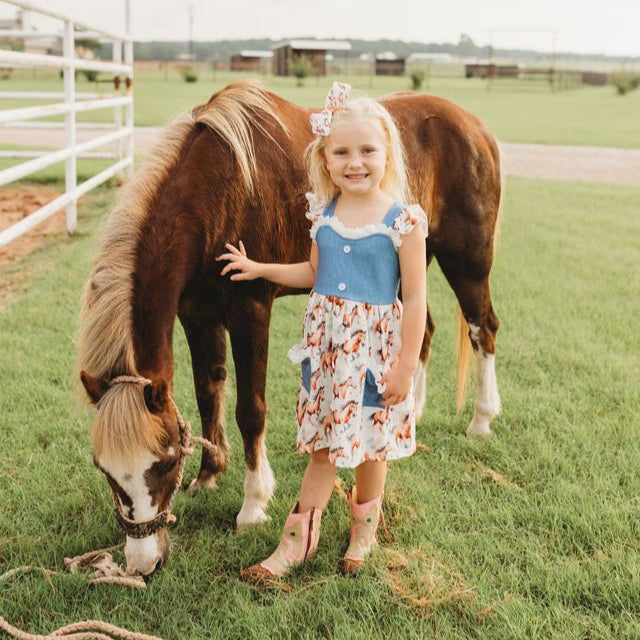 Plaid Bucking Horse Denim Dress, (0-18M)