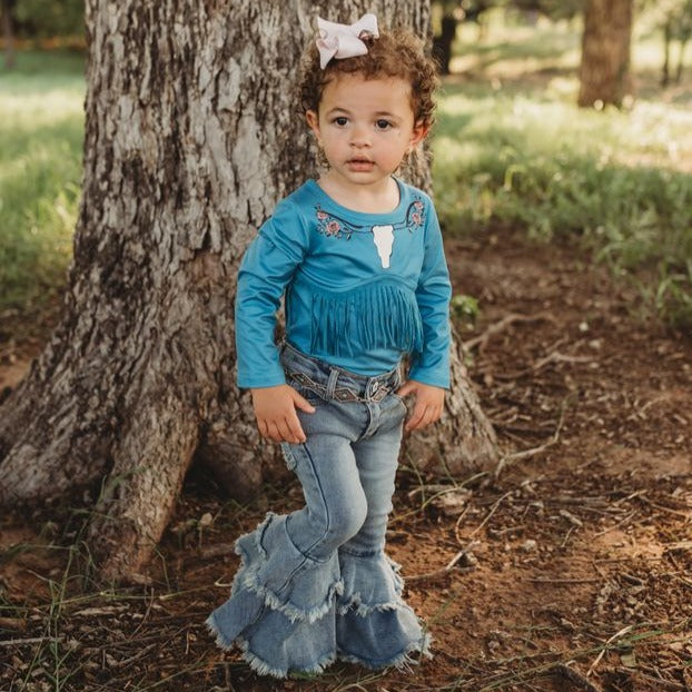 Blue Steer Head Fringe Shirt Baby (0-18M)