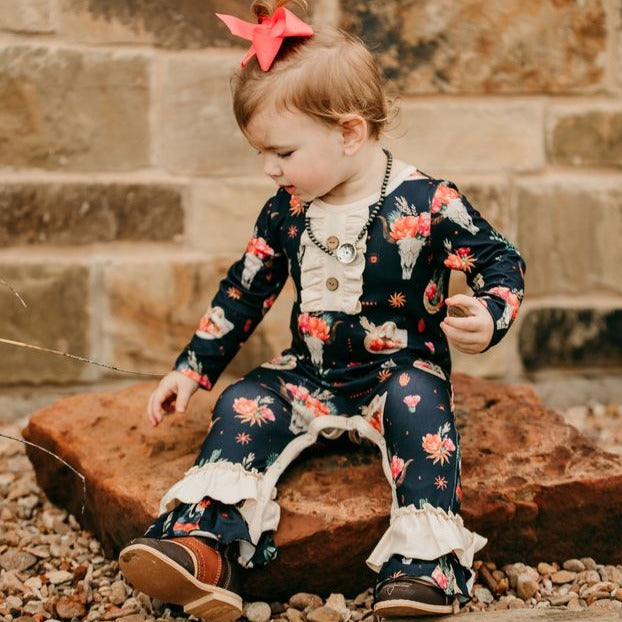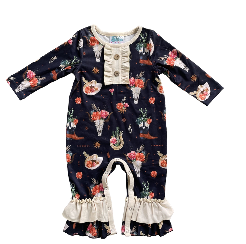 Black Floral Skull Long Sleeve Romper Baby (0M-2T)