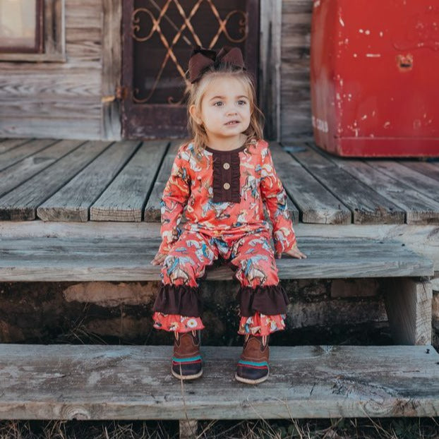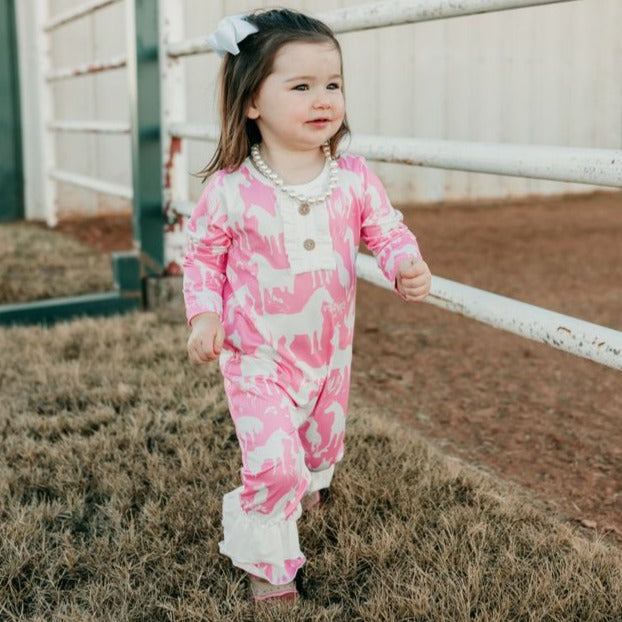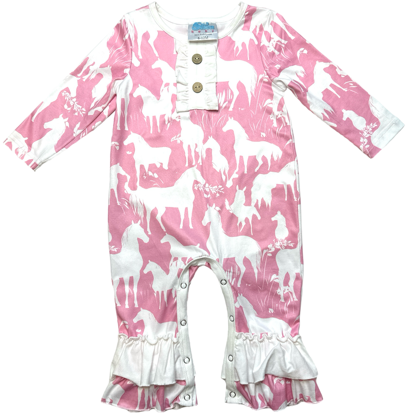 Grazing Horses Long Sleeve Romper Baby (0M-2T)