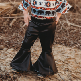 A must for this year’s Fall and Winter wardrobe, these Faux Black Leather Bells are not only comfortable but extremely stylish! Perfect for any day wear or turning heads at the rodeo, these Faux Leather Pants will make a statement!