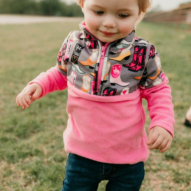 Looking to have your little one warm and stylish is Fall and Winter? These Fleece Zip ups are comfortable and perfect for cowboys and cowgirls of all ages. The quarter zip makes taking it on and off easy. This fleece is a must for every closet this year!