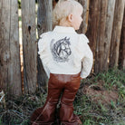 For the girl who has cowgirl in her soul and style in her stride, the Horseshoe Ruffle Jacket is a must have! Designed with durable fabric and ruffle details, it brings all the western flair with the girly twist.