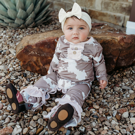 Brown Cowprint LS Romper (0M-2T)