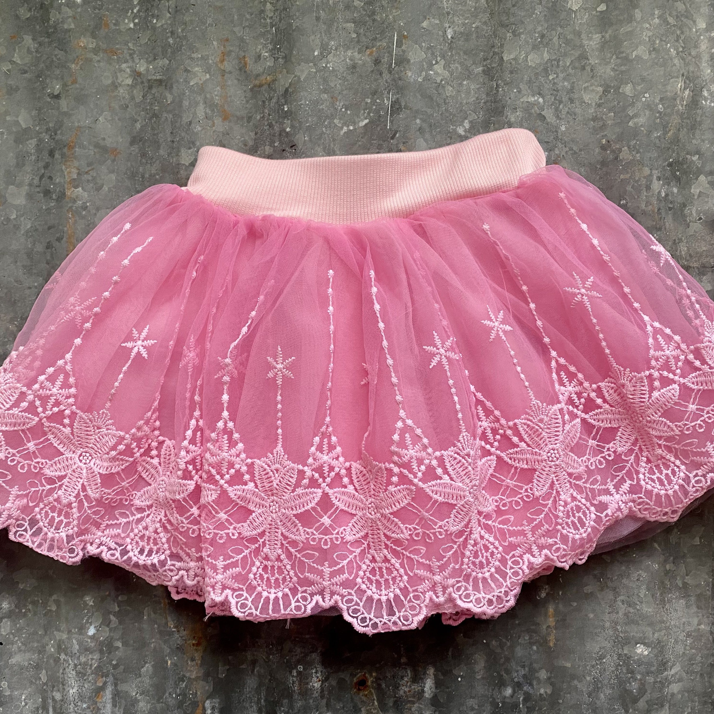 The Pink Lace Chiffon Skirt matches all our Shea Baby tops, and Shea Baby Boots.