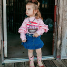 The Denim Skirt matches all of our Shea Baby tops, and Shea Baby Boots.