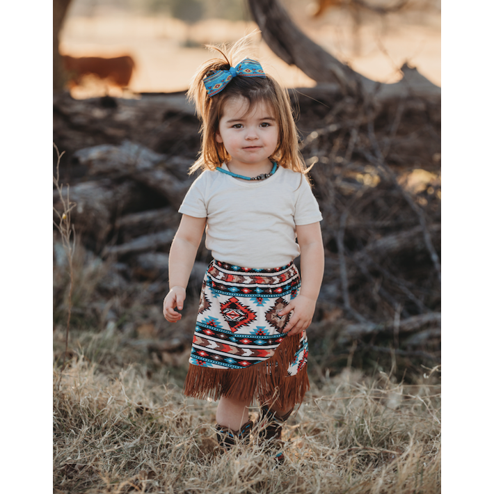 This Aztec Skirt is complimented by any of our Shea Baby Boots and Tops.