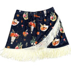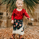 This Black Floral Skull Fringe Skirt is complimented by any of our Shea Baby Boots and Tops.