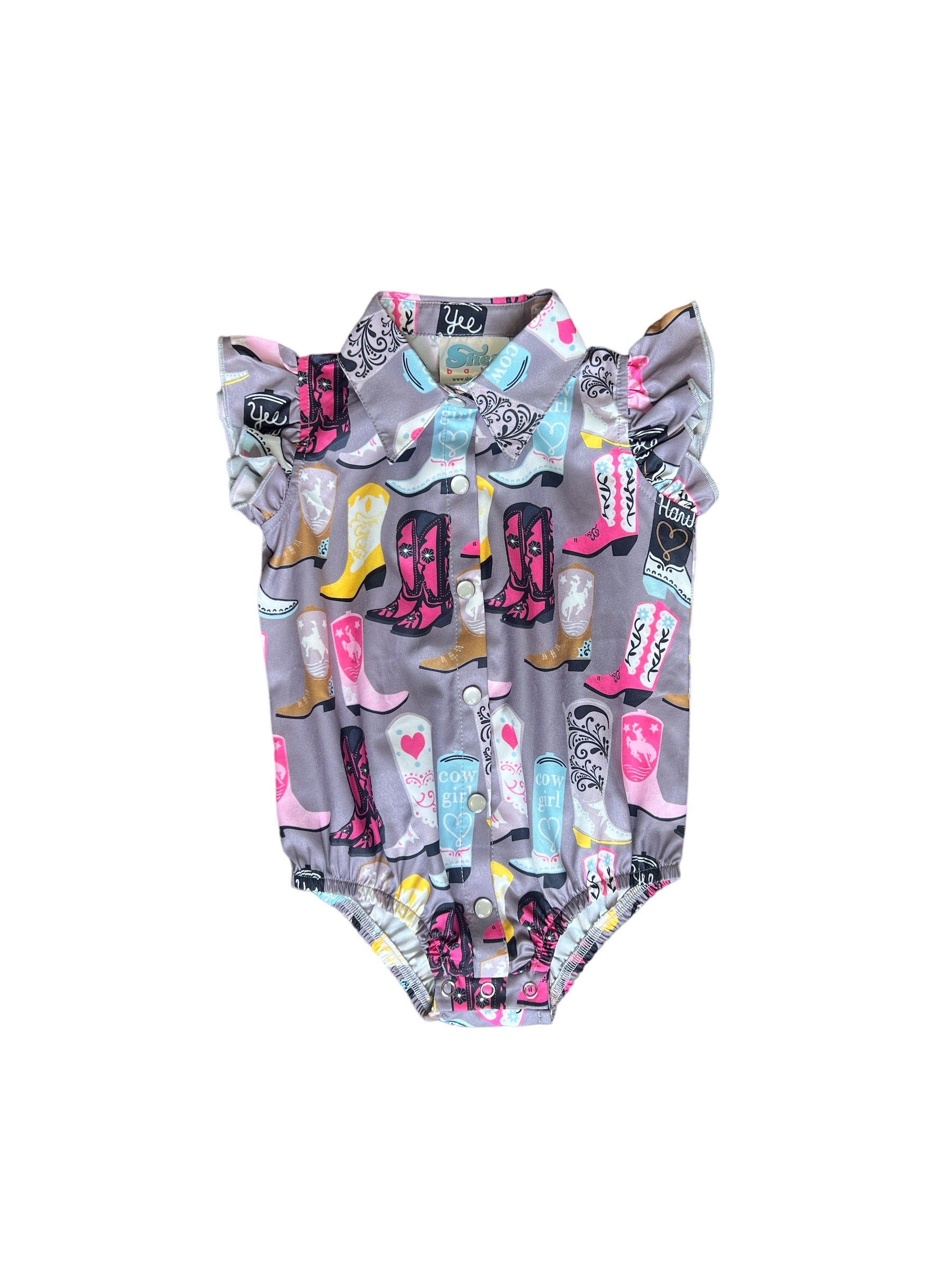 Grey Boot Ruffle Snap Onesie Baby (0-18m)