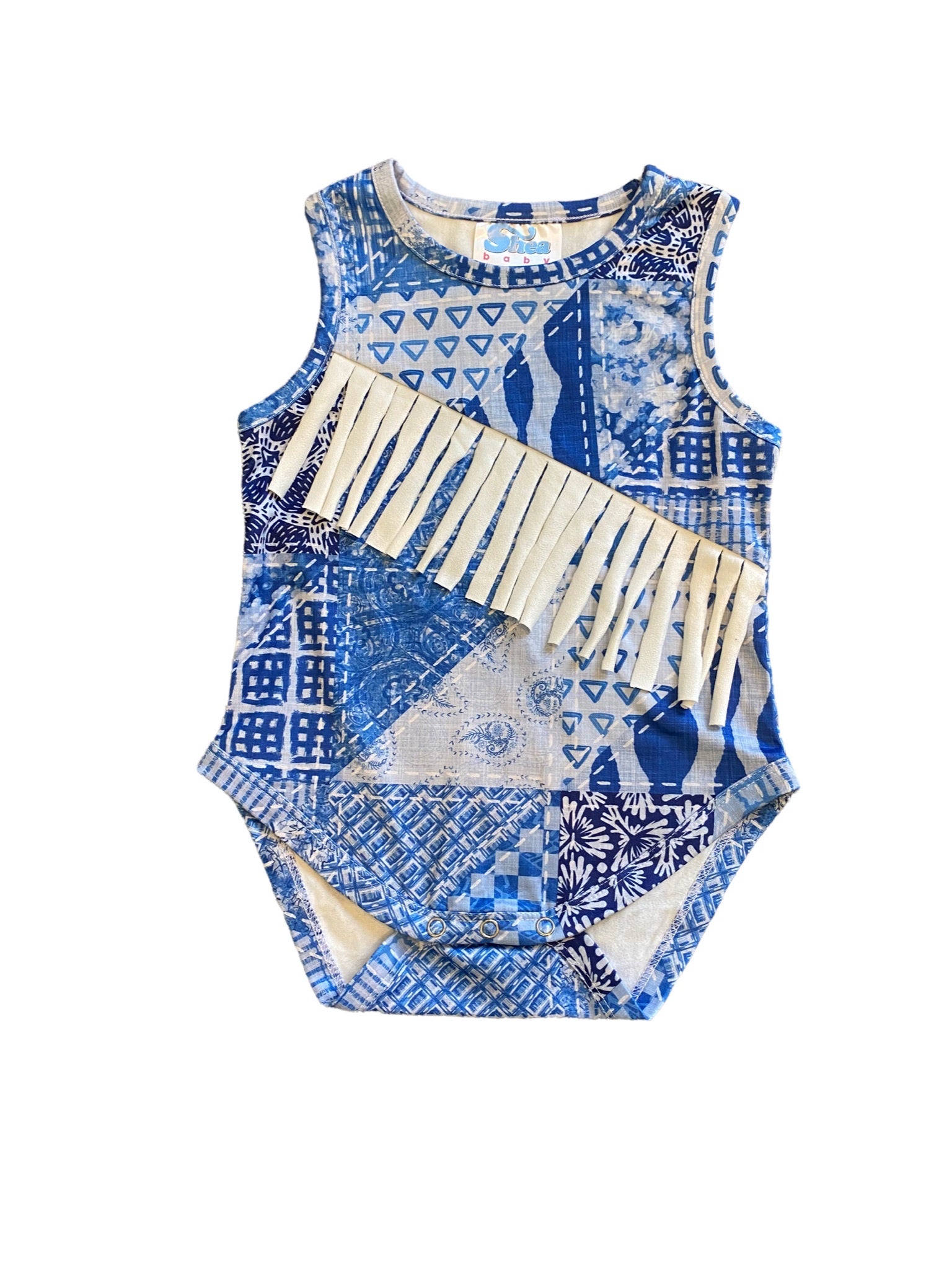 Denim Print Sueded Fringe Onesie (0-18M)