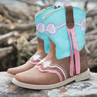Our beautiful “Hadley” boots are adorned with the perfect pink and turquoise combo that will give any outfit a pop of color! The pink tassels and hearts will make every little girl smile! The turquoise and brown leather is soft and comfortable but made to last!