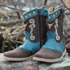 Our popular selling “Nash” toddler boot is made from the softest real leather and comfortable for any size! “Nash” is a brown and blue boot embroidered with a long horn that is sure to make any little cowboy smile! These boots are perfect for every cowboy’s wardrobe and are made to last!