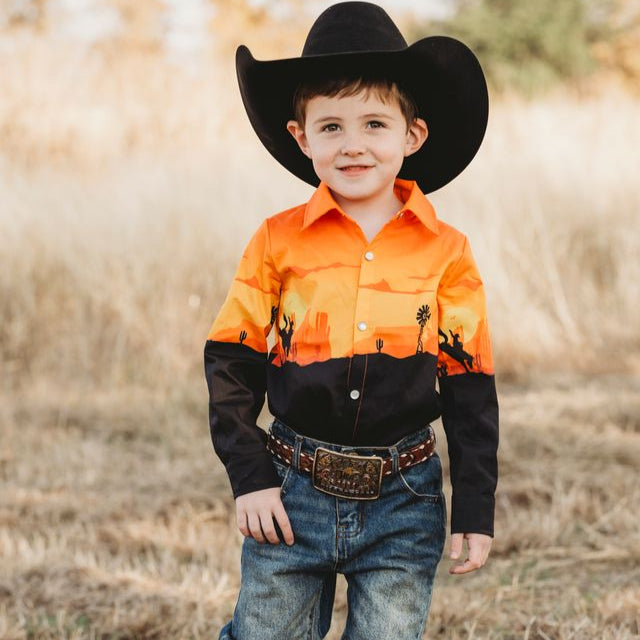 Retro Cowboy Orange LS Pearl Snap Shirt (6-7)
