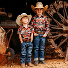 Crafted with stylish pearl snap buttons, this Long Sleeve Pearl Snap shirt will look handsome on your little one! The durable material makes this shirt perfect for family parties and days on the ranch. Shea Baby Short Sleeve Snap shirts are a must for every cowboy!