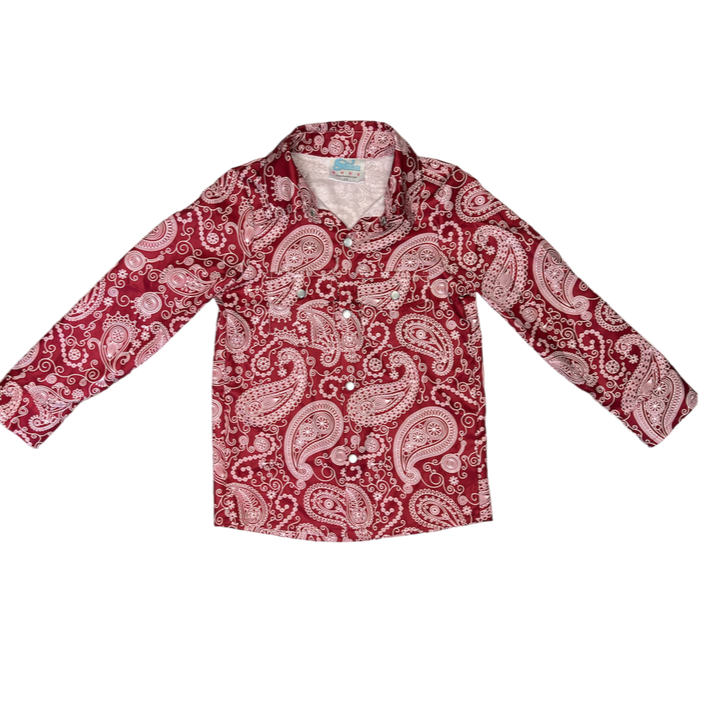 Maroon Paisley LS Pearl Snap Shirt, (6-7)