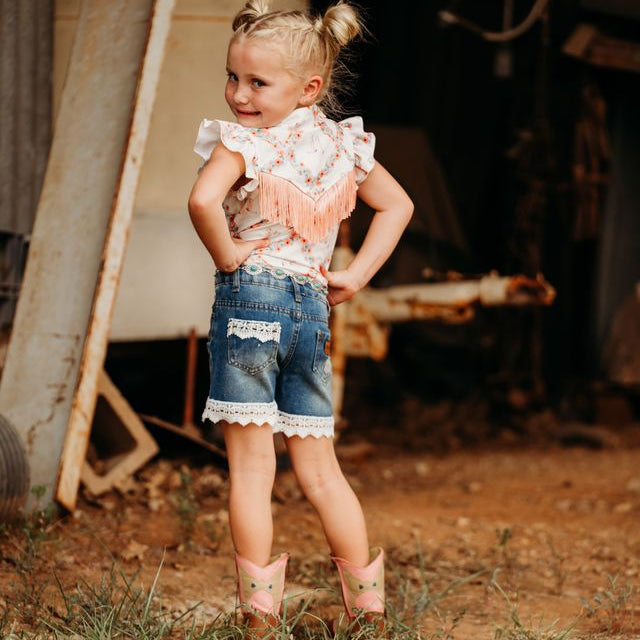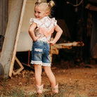 These Denim Lace shorts pair with all of our Shea Baby tops, and Shea Baby Boots.