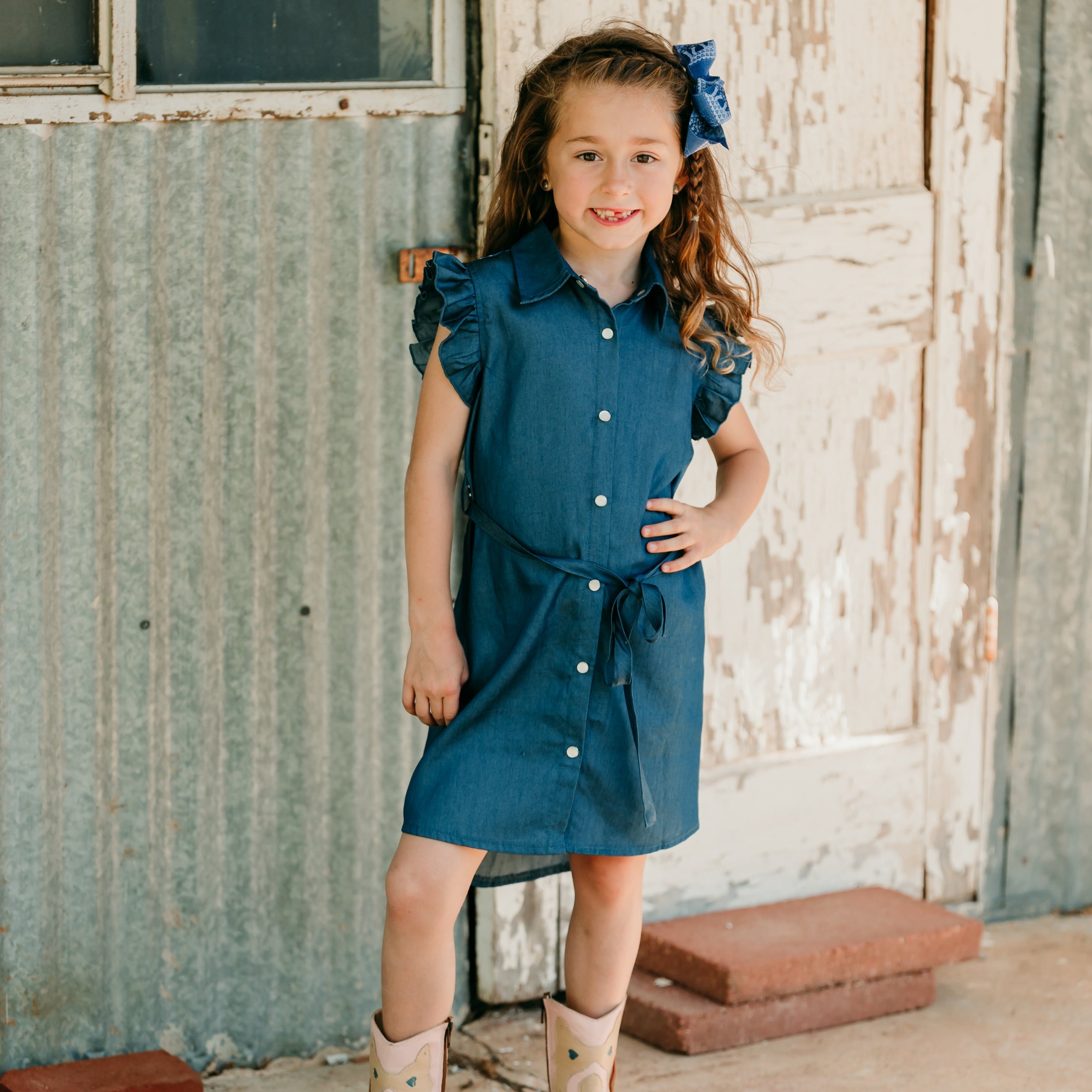 Denim Aztec SS Pearl Snap Dress Kid (6-7)