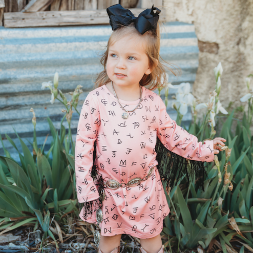 Long Sleeve Pink Brand Fringe Dress Baby (0-18)