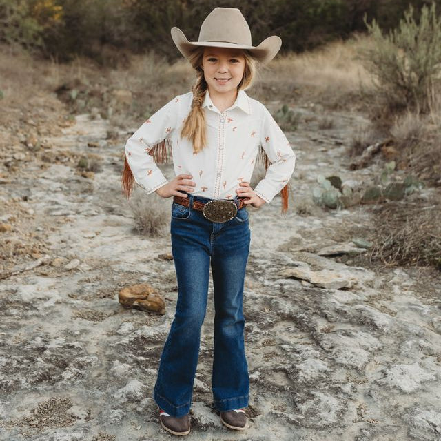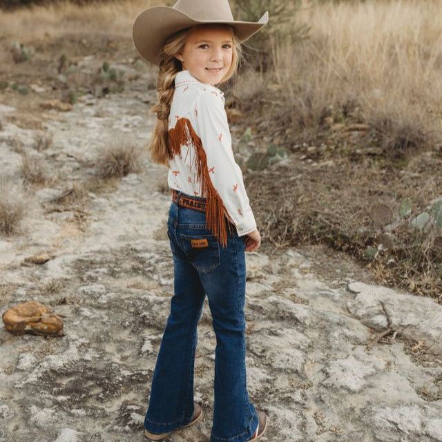 Literally Just A Cowgirl LS Fringe Shirt (6-7)