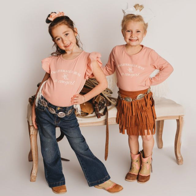 Literally Just A Cowgirl SS Fringe Shirt, (2T-5T)